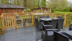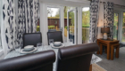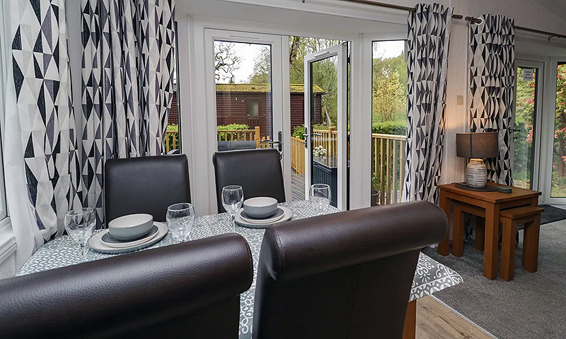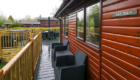 Double patio doors lead from the main living area onto a large deck to the front of the lodge.